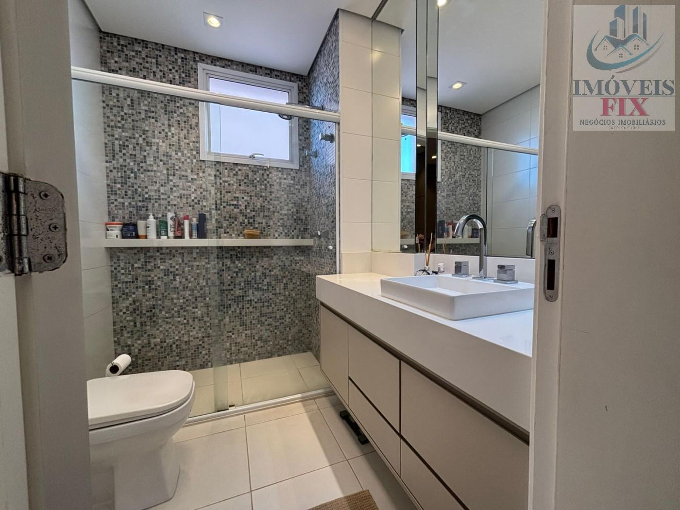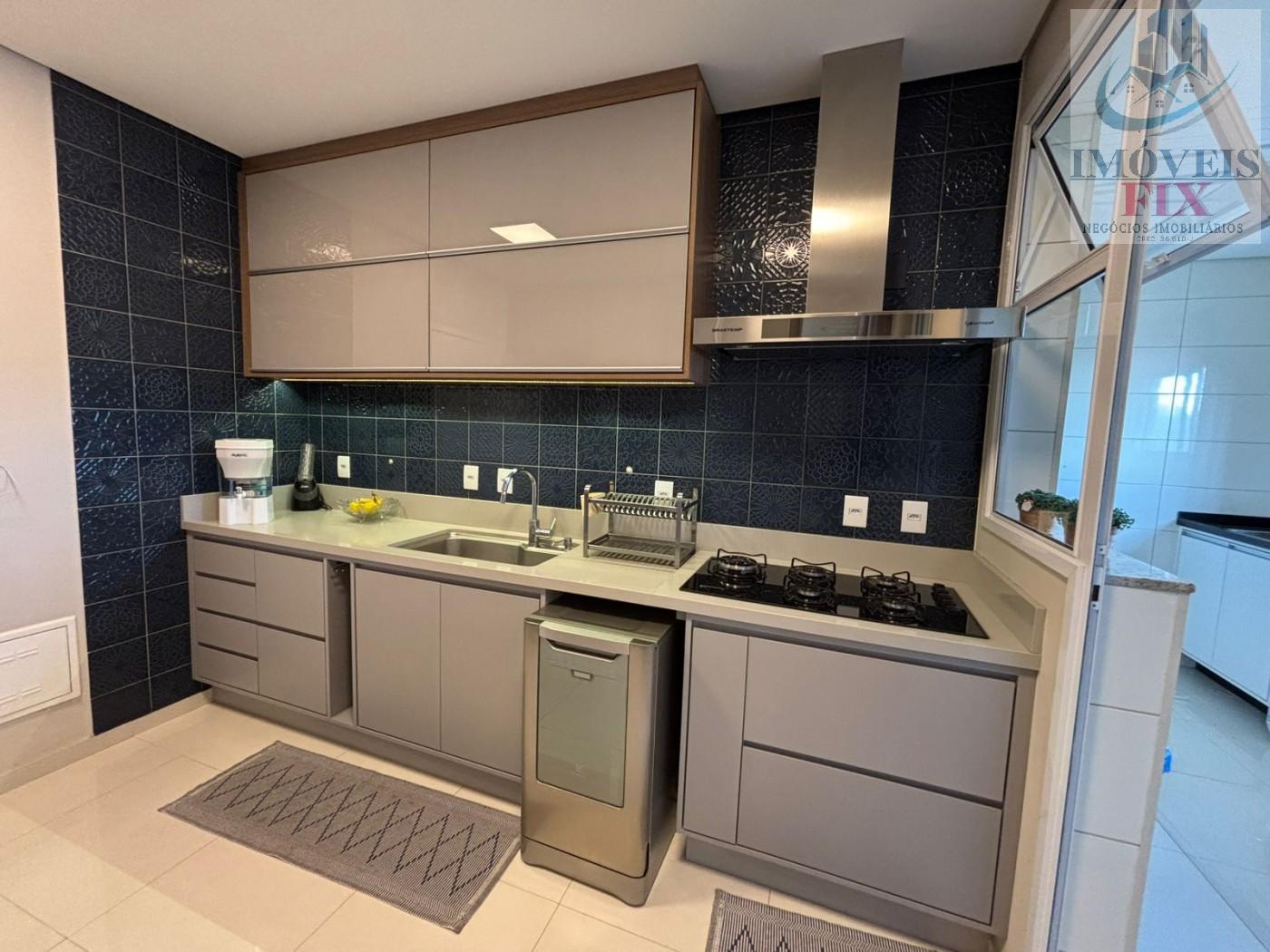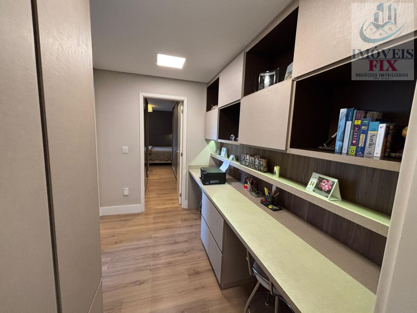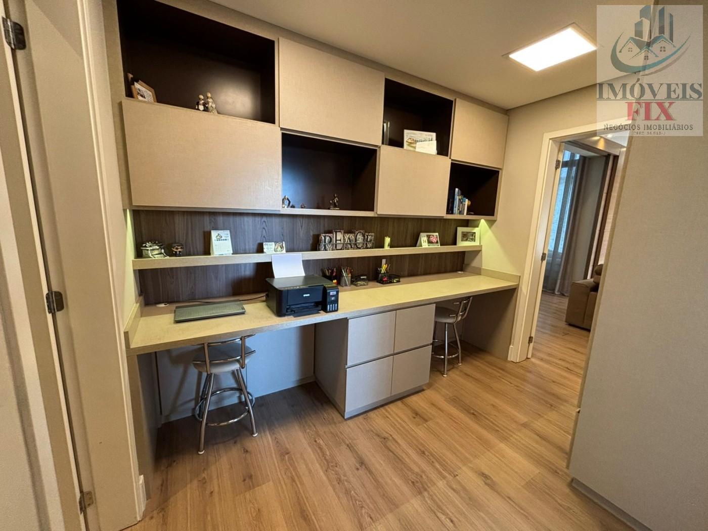 Os dois ambientes de recepção integram-se à cozinha planejada com bancada em Silestone, cooktop, forno embutido e micro-ondas, estruturando um fluxo perfeito entre forma e função. O hall íntimo, ideal para home office, traz escritório planejado e iluminação em LED. Acabamentos em porcelanato, sanca de gesso com luminárias e revestimento Castellato na sala elevam a sofisticação. Conforto térmico assegurado por ar-condicionado na sala e na suíte master, além de elevador social com acesso biométrico e porta principal com fechadura eletrônica.
